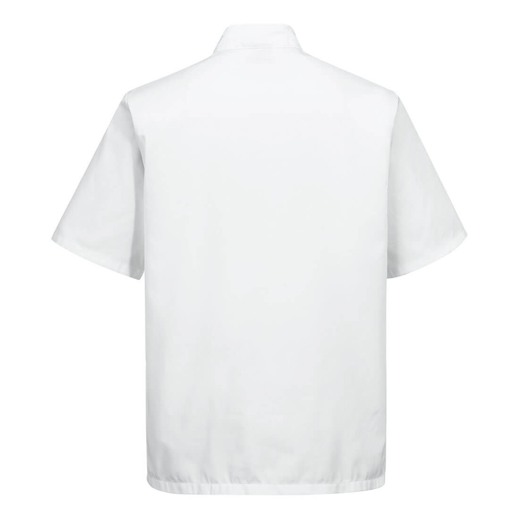 Meleg munkakörnyezetre tervezett, séfek részére tervezett rövidujjú kabát, mandaringallérral, többfunkciós, stílusos unisex fazonban. Klasszikus szabású, magas minőségű, könnyen kezelhető munkaruha modell, kopásálló, tartós, színtartó anyagból készül, ami mosás után is megtartja méretét. Ötsoros kivitelű, cserélhető gombokkal rendelkezik, valamint egy zsebbel van ellátva a biztonságos tárolás érdekében. A kialakítás komfortos és ideális a mindennapos használatra.